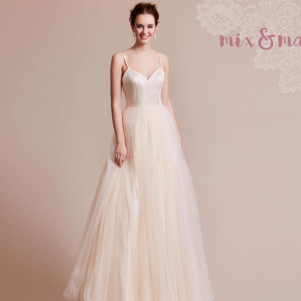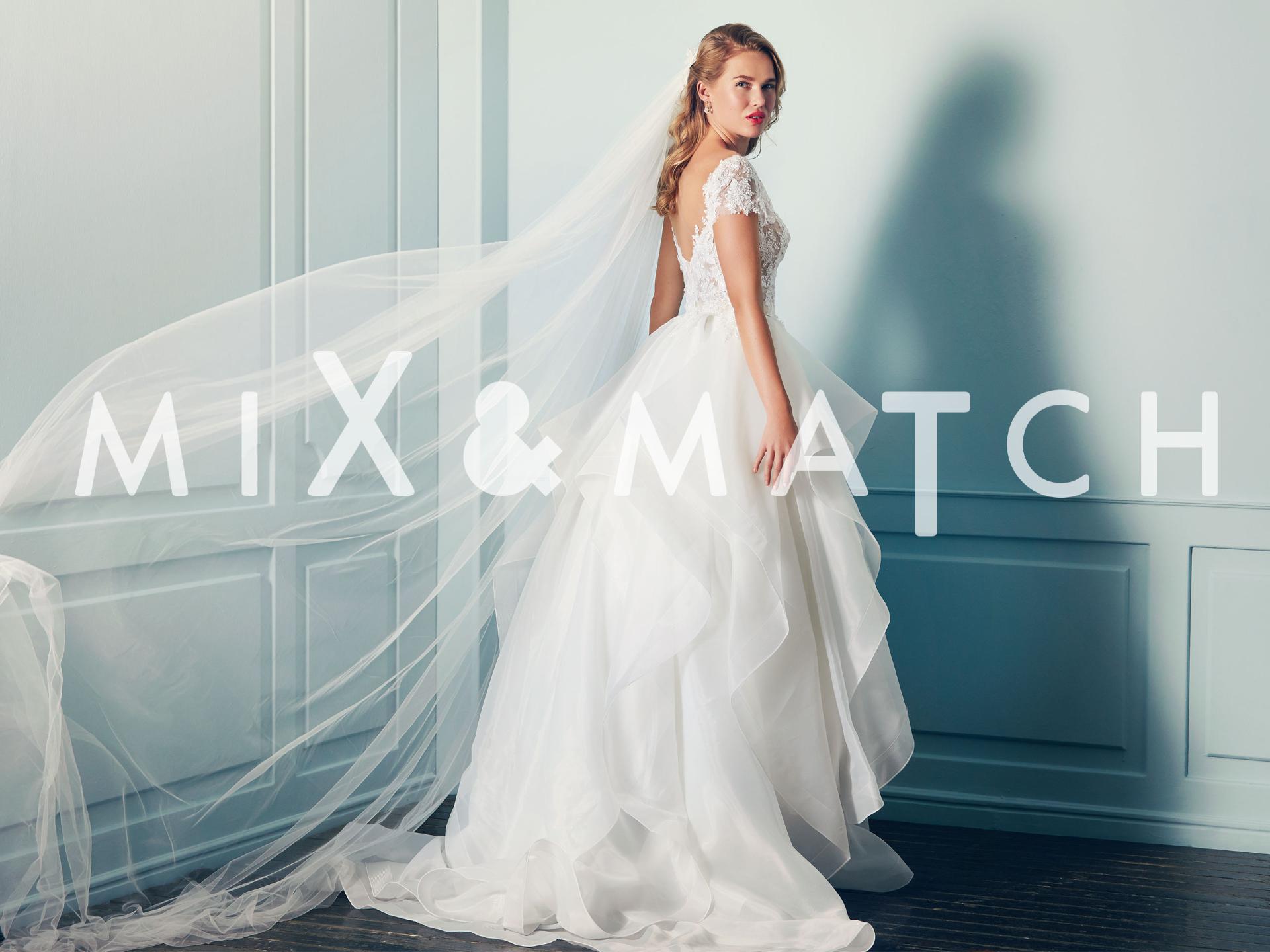 Med vores seperate toppe og nederdele, yderdele og basis undertoppe eller underkjoler, kan du mixe dig frem til din helt egen personlige bryllupsstil.