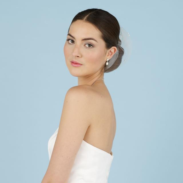 Især fascinators med blomster eller broderet pynt er et hightligt til den korte brudefrisure.