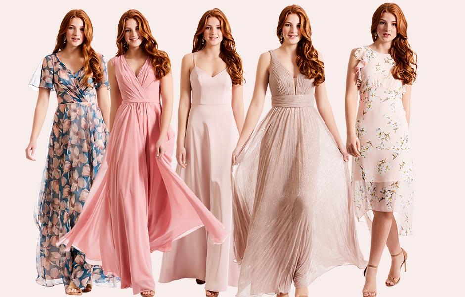 Sådan styler du dine brudepiger i forskellige kjoler - men i samme farveskala.